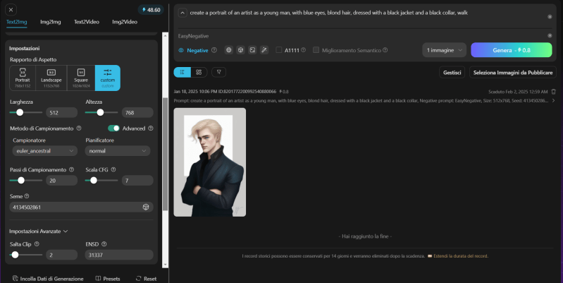 Seleziona poi nell’opzione ‘Seme’ l’id dell’immagine selezionata: