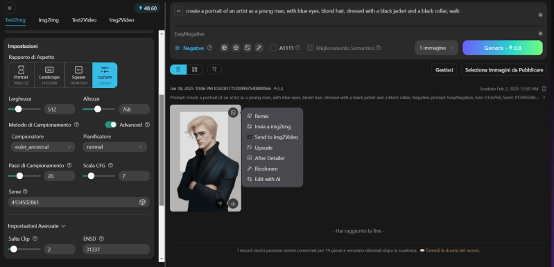 Per generare un’immagine con lo stesso soggetto, utilizza la funzione remix. Clicca sull’immagine generata e seleziona ‘Remix’: