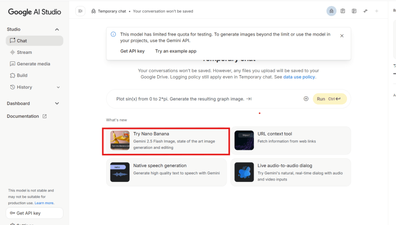 - su Google AI Studio aprendo una nuova chat