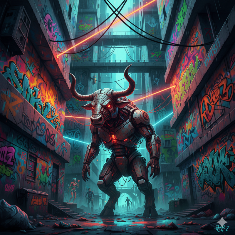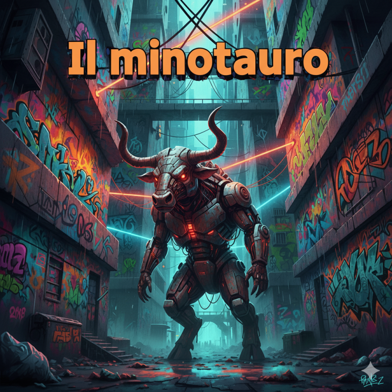 - Generazione di immagini da zero – Ho chiesto di generare un’immagine da zero. Il prompt: "Un'interpretazione moderna del Minotauro in un labirinto urbano futuristico, con graffiti colorati sulle pareti del labirinto e luci al neon che riflettono l'umore dell'essere. Stile: street art." Qui l’immagine generata mi ha stupito moltissimo.